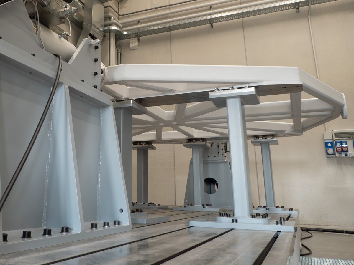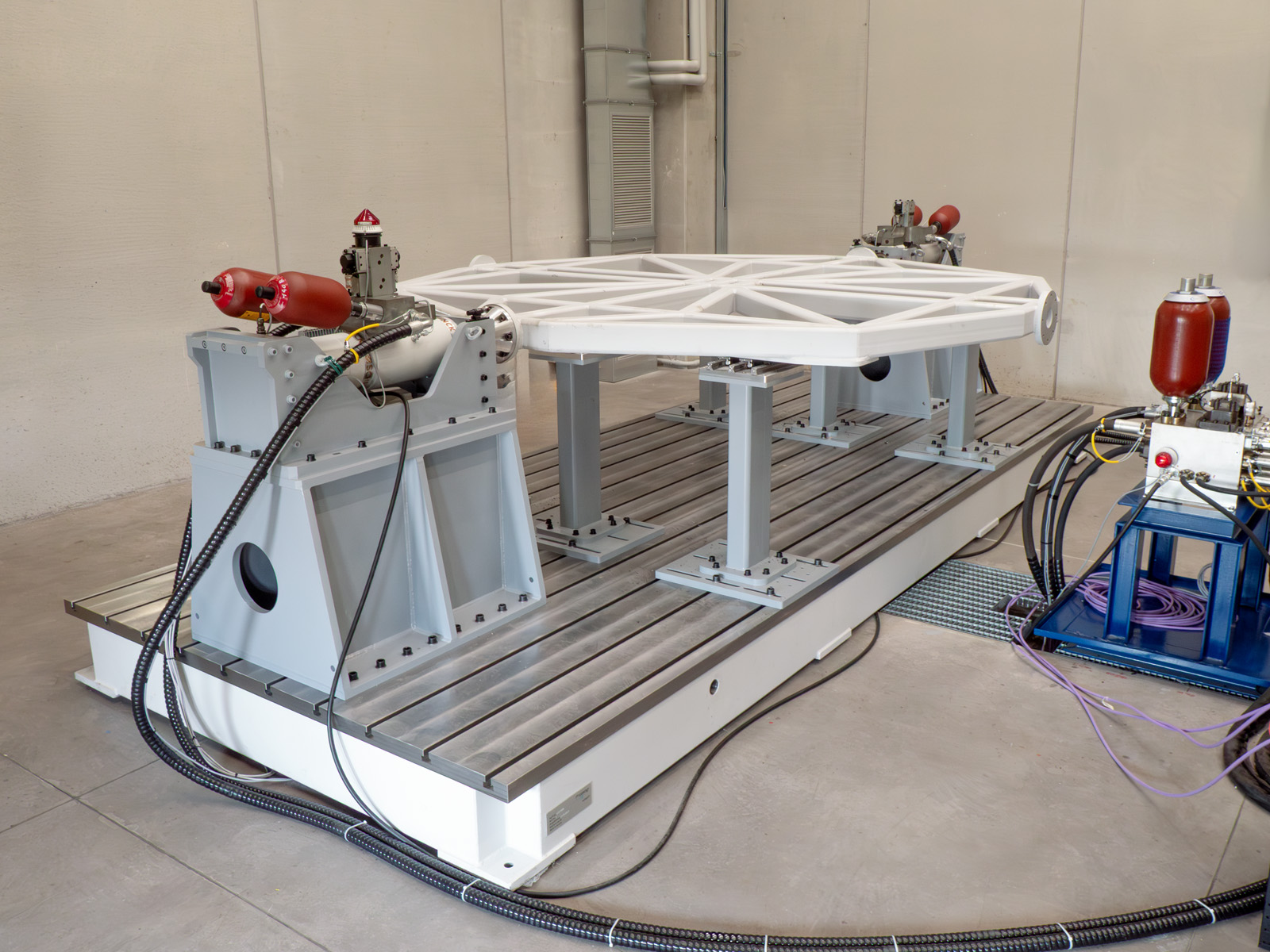 La piastra a tralicci è predisposta per essere ruotata, consentendo il cambio di asse di test senza la necessità di